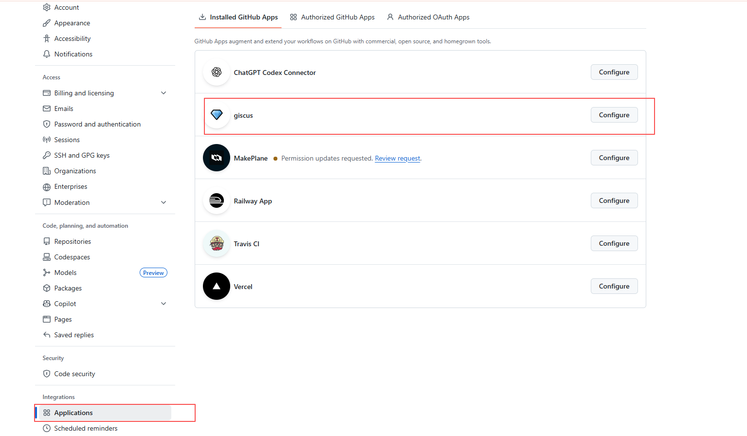 - 安装后,可在 GitHub → Settings → Applications 中重新配置。